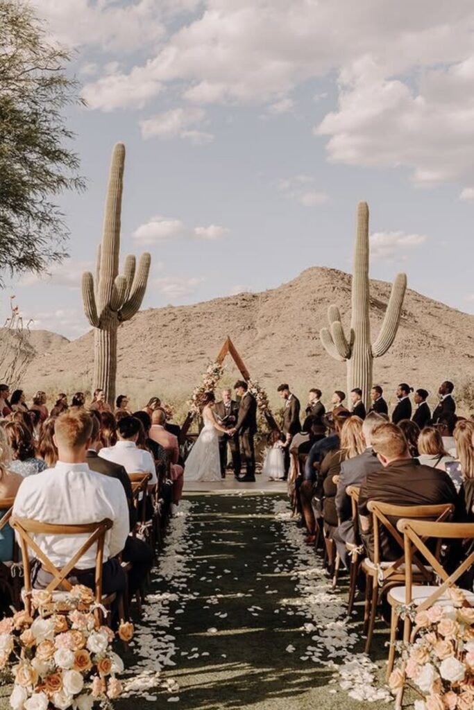 If your ceremony is near sunset, bringing a light wrap or jacket is smart  desert temperatures drop quickly after dark.