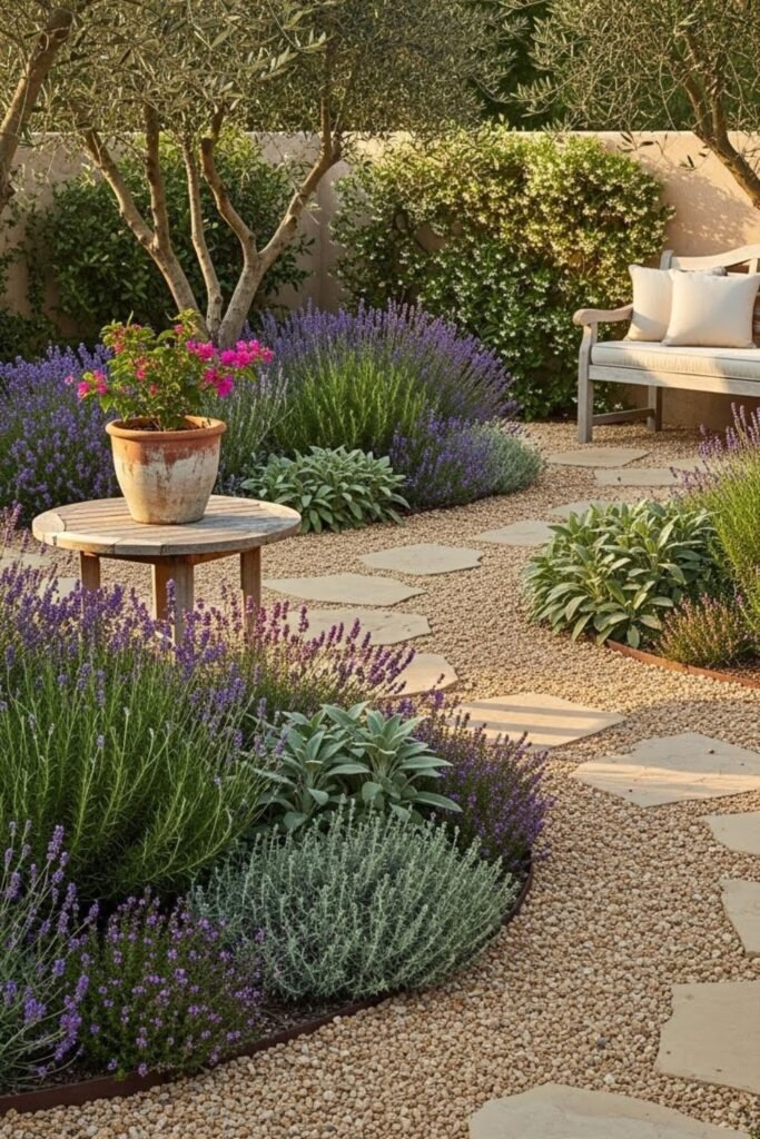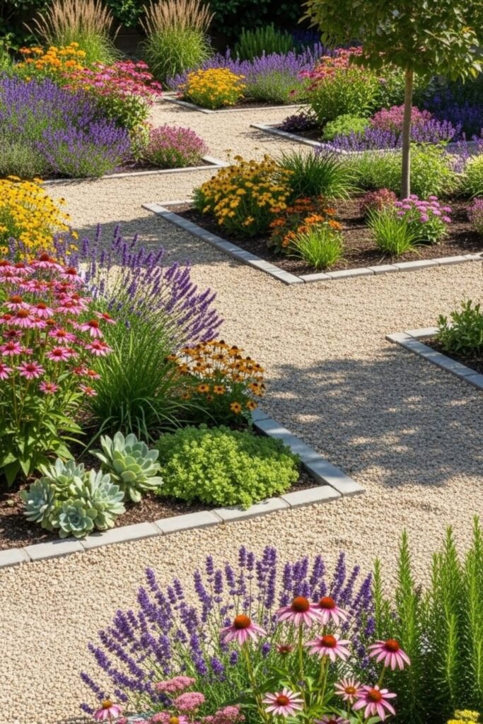 Paths change how a yard feels, so I trade thirsty grass for gravel walks framed by plants. I lay permeable fabric, spread compacted gravel, then plant tough bloomers along edges.