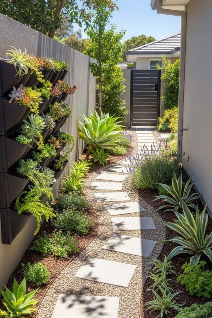 Narrow areas waste water when ignored, so I redesign side spaces with slim drought plants. Vertical growers, hardy grasses, and ground covers fill tight zones without crowding. .
