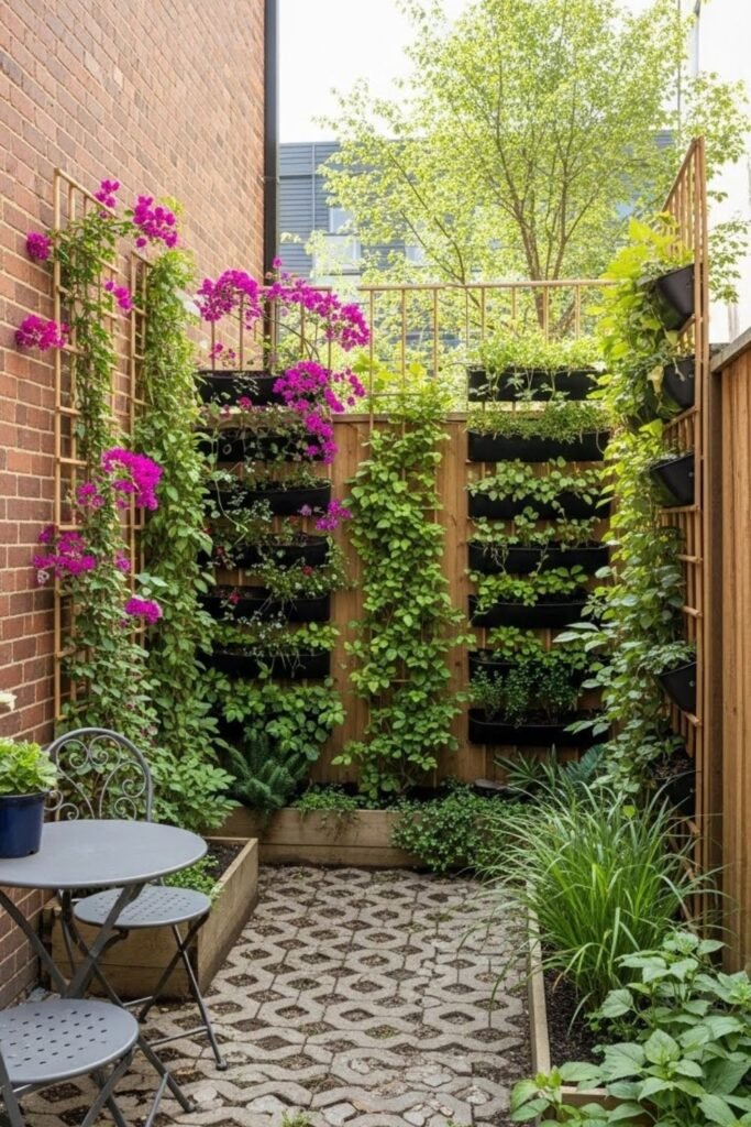 Vertical focus also reduces weed pressure while turning plain boundaries into living features that survive summer without daily attention or constant replacement cycles.