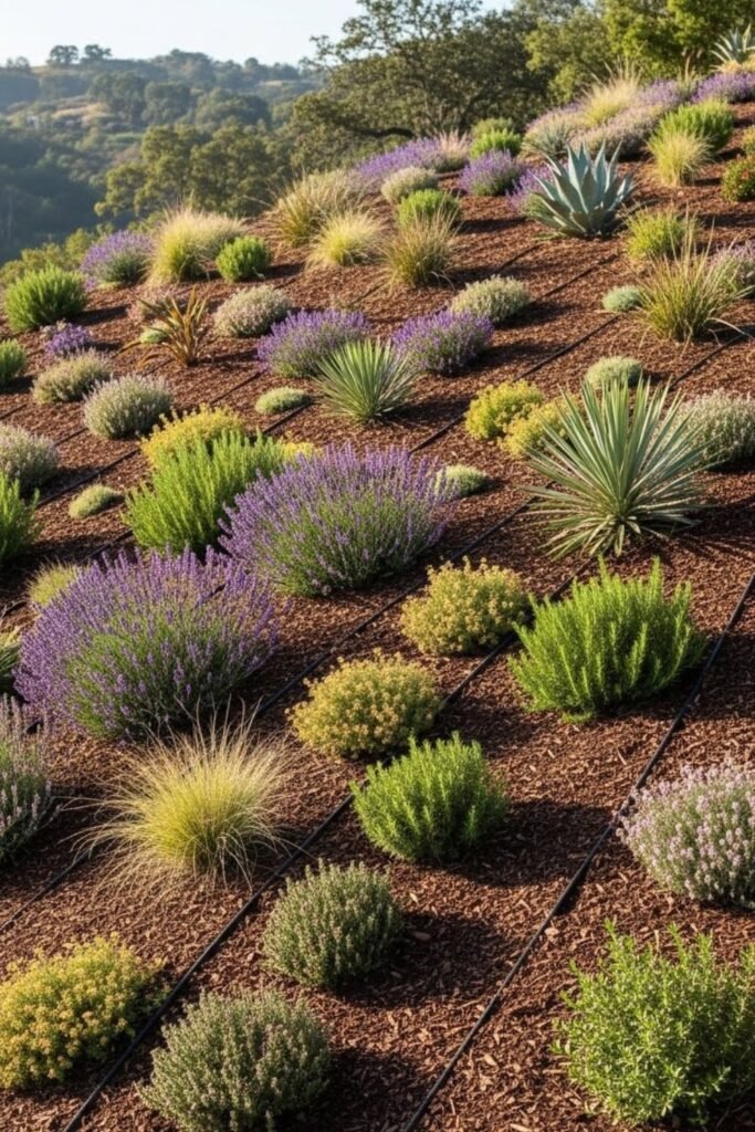 I plant in staggered rows, mulch heavily, and water deeply until roots settle. Slopes stabilize, maintenance drops.
