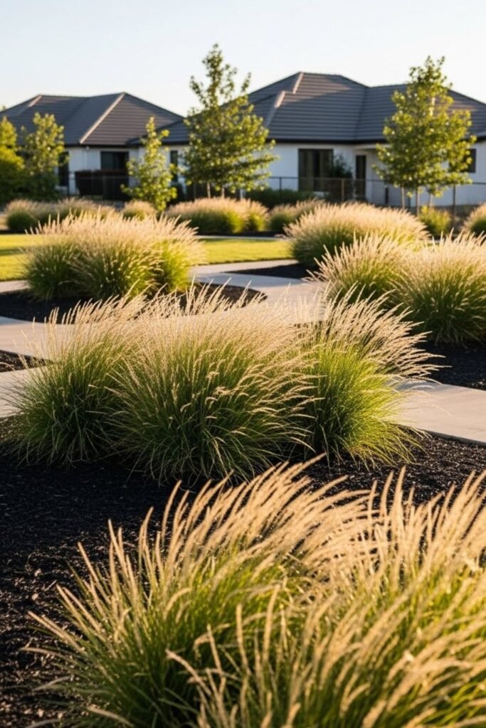 Movement matters to me, so I cluster ornamental grasses into islands instead of scattering plants everywhere. Tall blades sway, catch light, and break heat without demanding water.