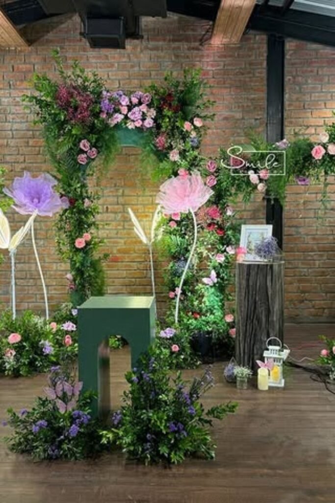 Walking into a space feels different when plants frame the moment. Flower-filled arches work best at garden entrances, patio edges, or event corners.