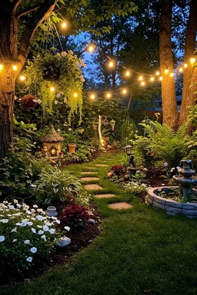 How Can Lighting Transform a Simple Garden Into an Enchanted Space at Night?
