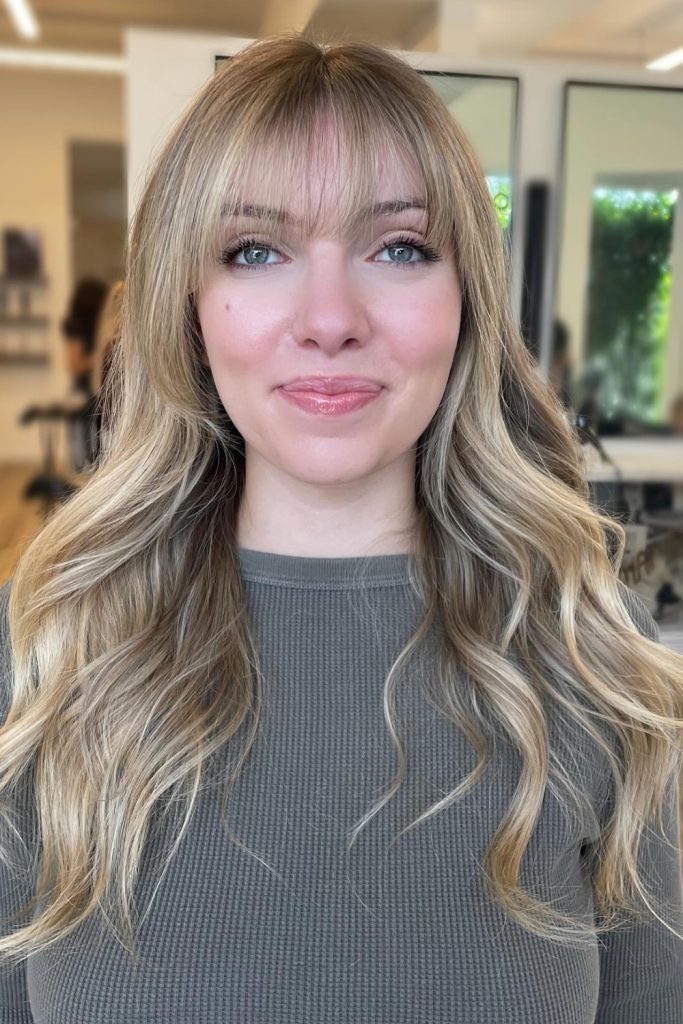 This style looks good on both straight and wavy hair, giving a gentle, dimensional look.