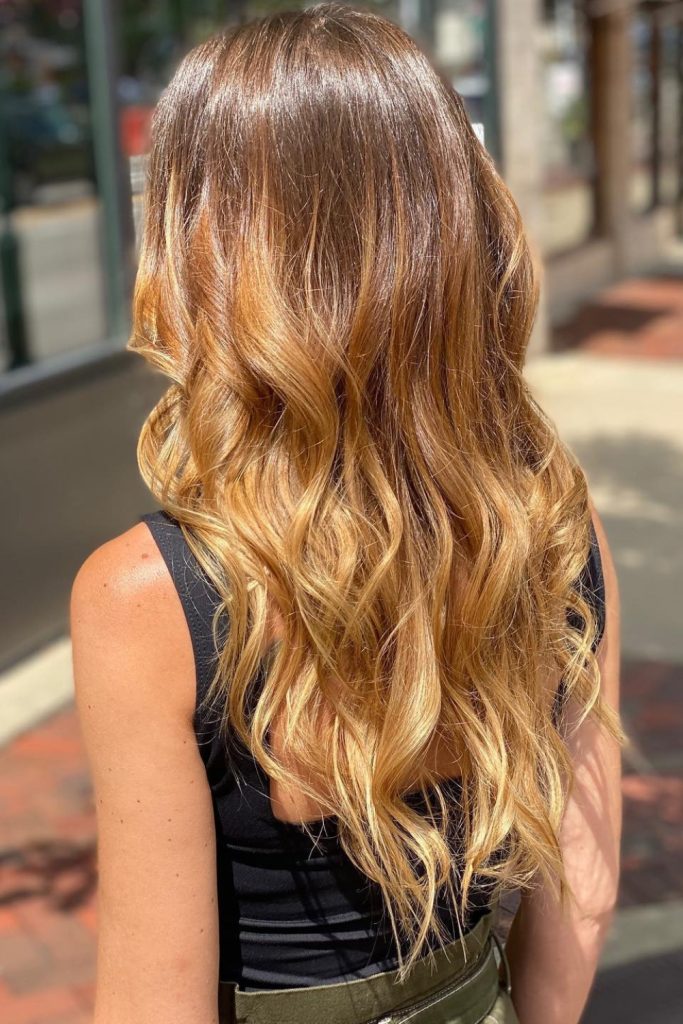 This smooth and natural gradient gives a sun-kissed glow, adding warmth to your look. It pairs nicely with loose waves, boosting the hair’s movement and texture.