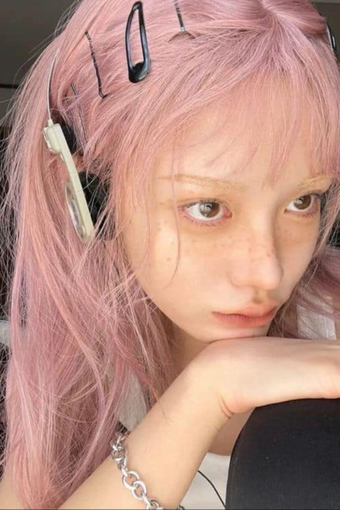 For fall, brunettes can try a playful hair color that mixes soft pastel pink with natural brown. This gives your hair a whimsical but edgy vibe.