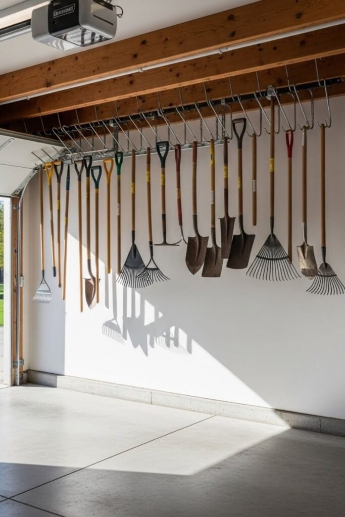 Keeping tools higher changed everything for me. I installed a hanging rack slightly above ground level so handles never touch the floor.