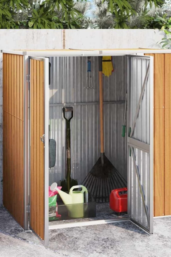 Weather stops destroying tools once storage becomes fully sealed. A compact metal shed like this blocks rain, limits humidity swings, and keeps soil tools away from constant moisture.