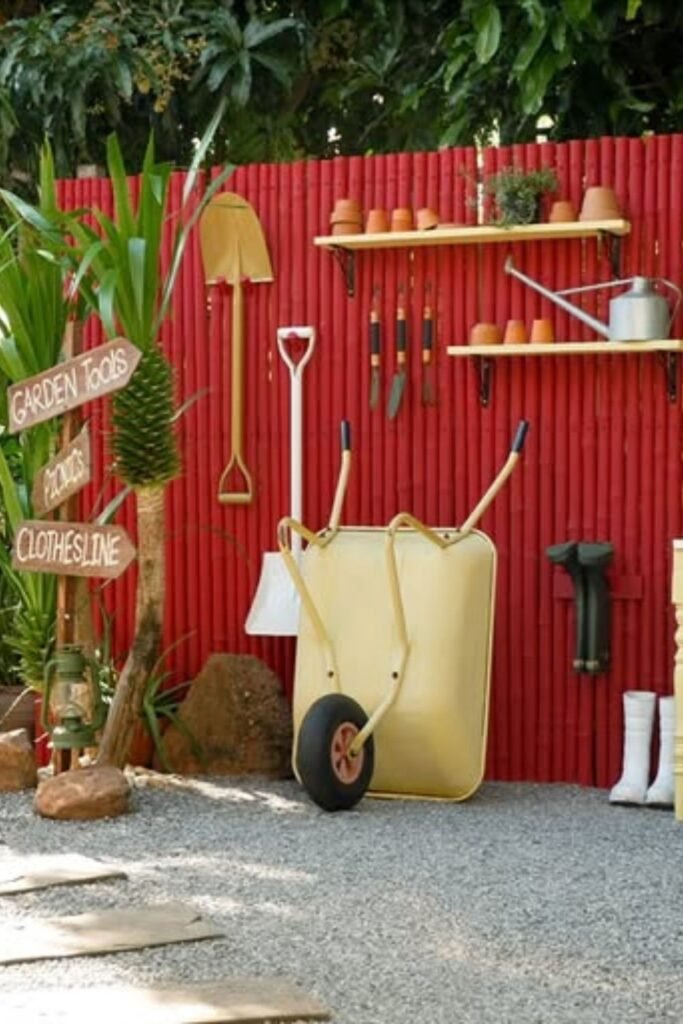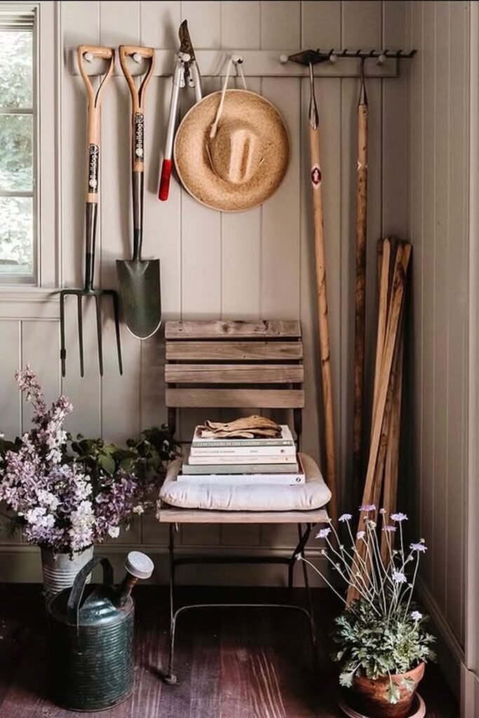 Motivation grows when gardening tools stop hiding and start inviting use. A display-style wall like this blends storage with visual order.