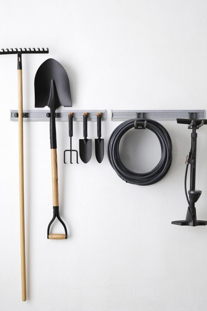 Mess stays controlled when small tools and gear share the same wall. A simple rail like this keeps hand tools visible.