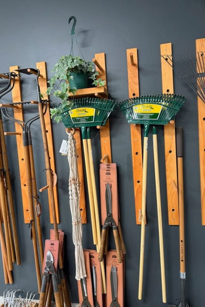 Visual calm changes how often gardening actually happens. A clean wall system like this turns tools into something easy to grab.