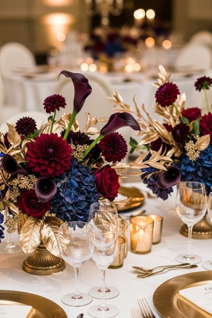 You have to mix metallic leaves or painted blooms with real florals so the look stays elegant, not artificial.