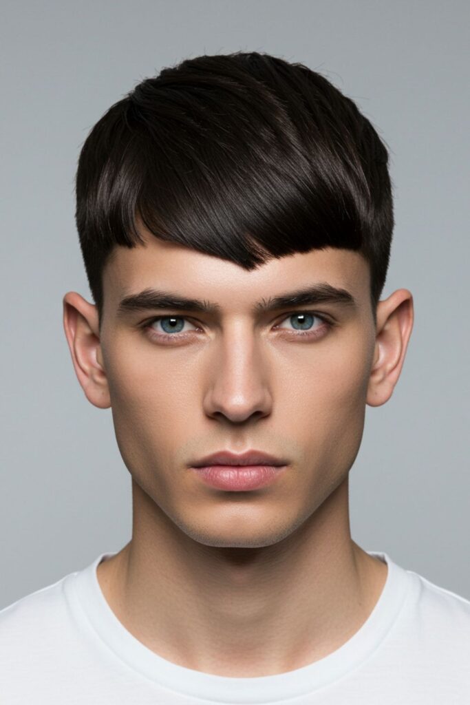 The hair gently tapers from the top to the sides for a clean, gradual finish.