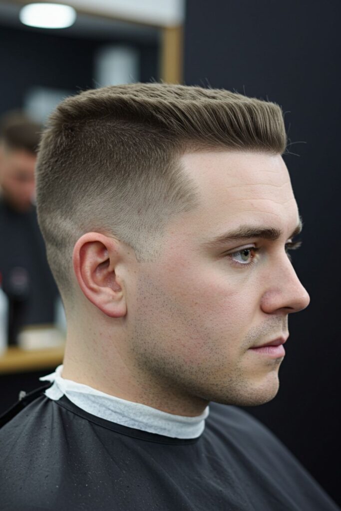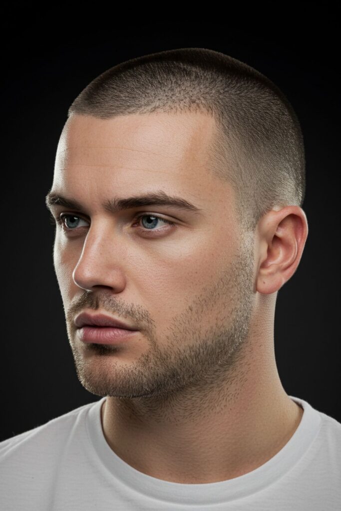 It involves cutting your hair extremely short across the entire head, offering a neat and sharp look that’s both rugged and modern.