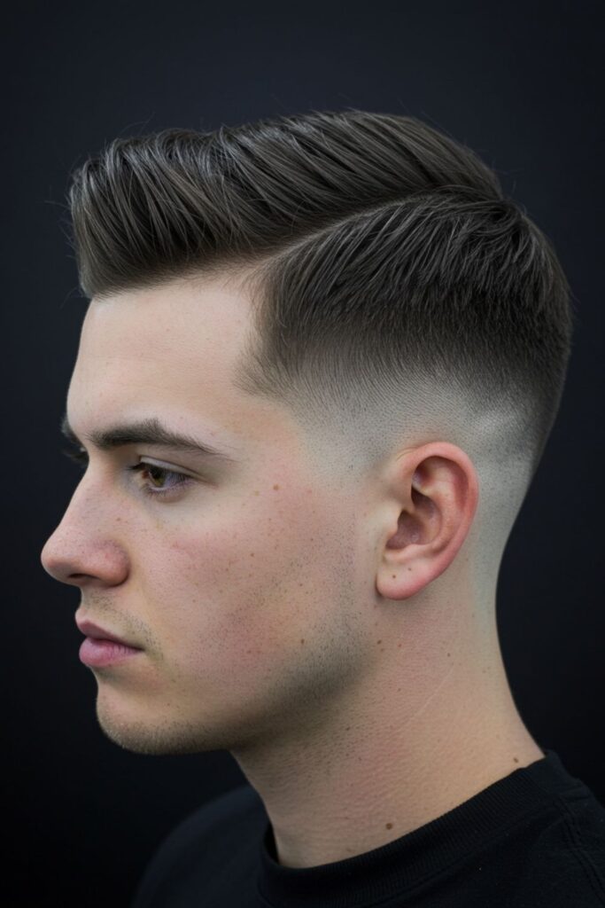 Elevate the style by styling the top with a textured finish or spikes for added flair while keeping the fade sharp.