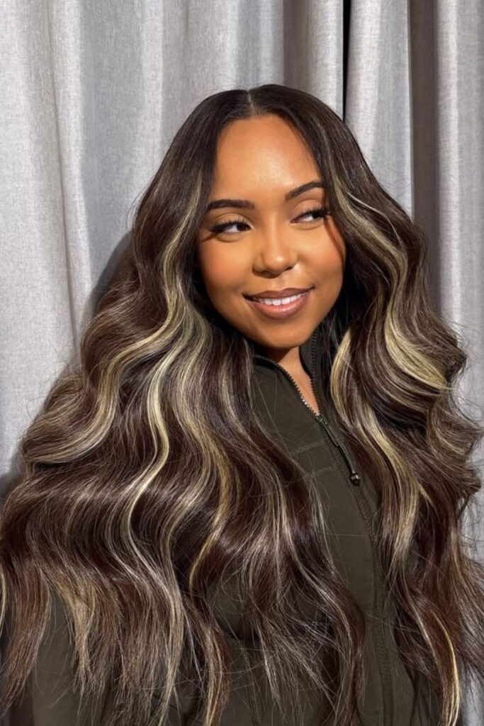 These subtle streaks light up your face and pair beautifully with straight or wavy styles.