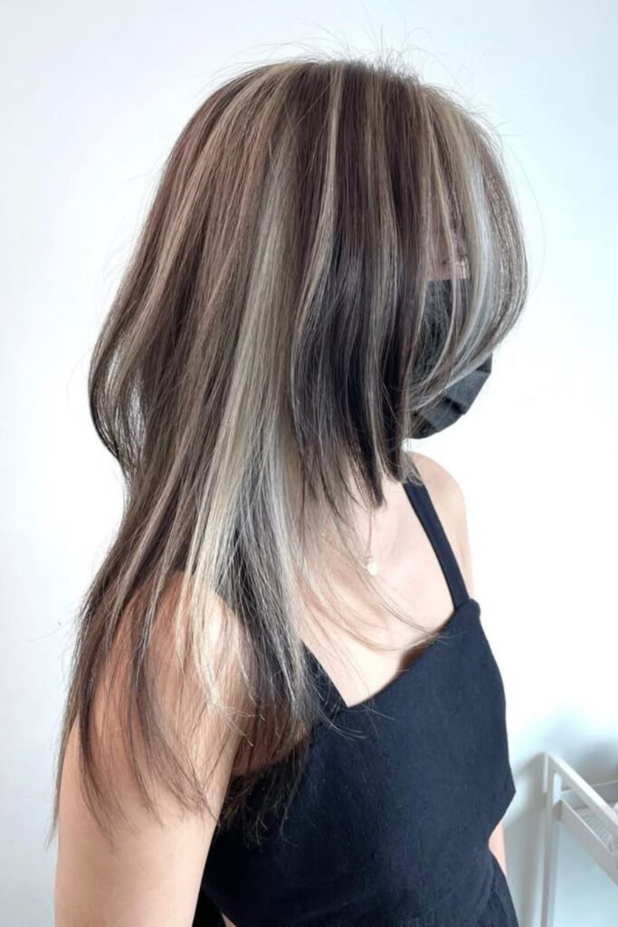 Go for smoky gray strands seamlessly blended with black, giving your hair a cool, metallic edge.