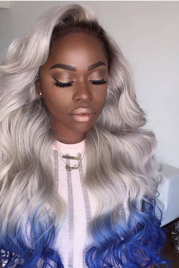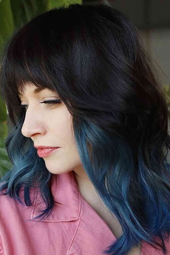 Black roots blending into an ombre of rich midnight blue create a dreamy, modern vibe.