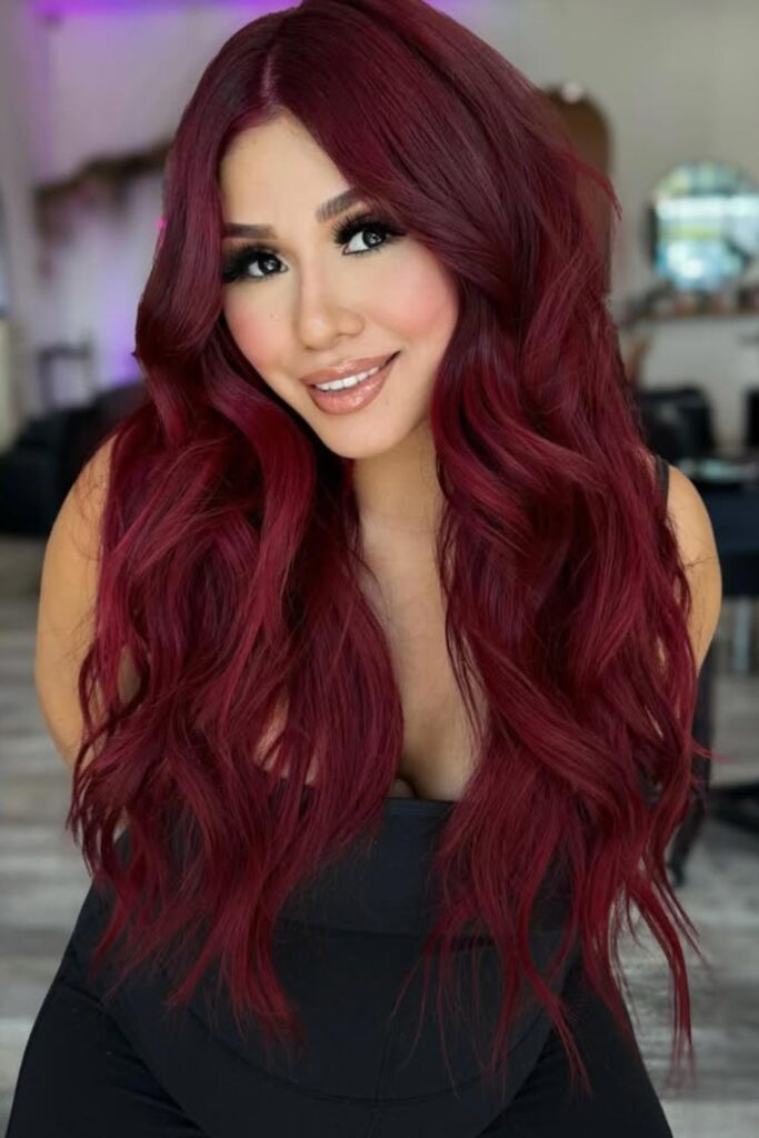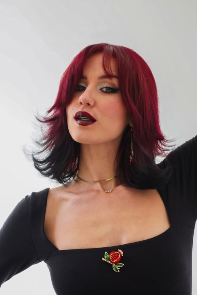 Mix deep cranberry and jet black for a layered, voluminous hairstyle full of richness and intrigue.