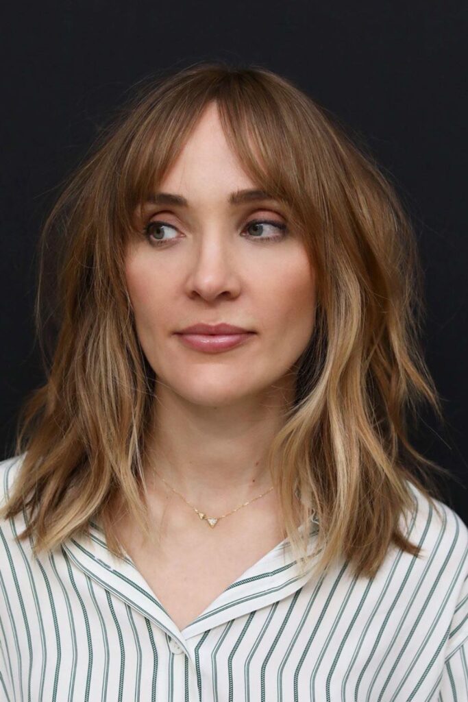This low-key style is paired perfectly with a layered bob for added volume and wispy bangs that frame your face beautifully.