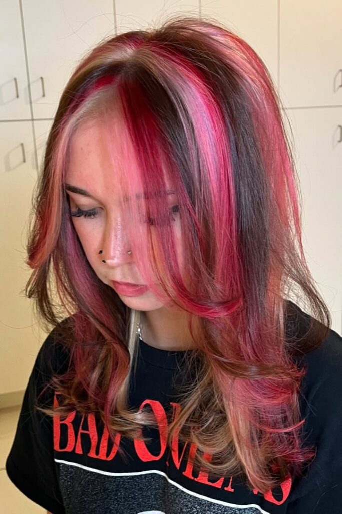 These vibrant streaks enhance layered cuts, delivering a punk-inspired, creative vibe.