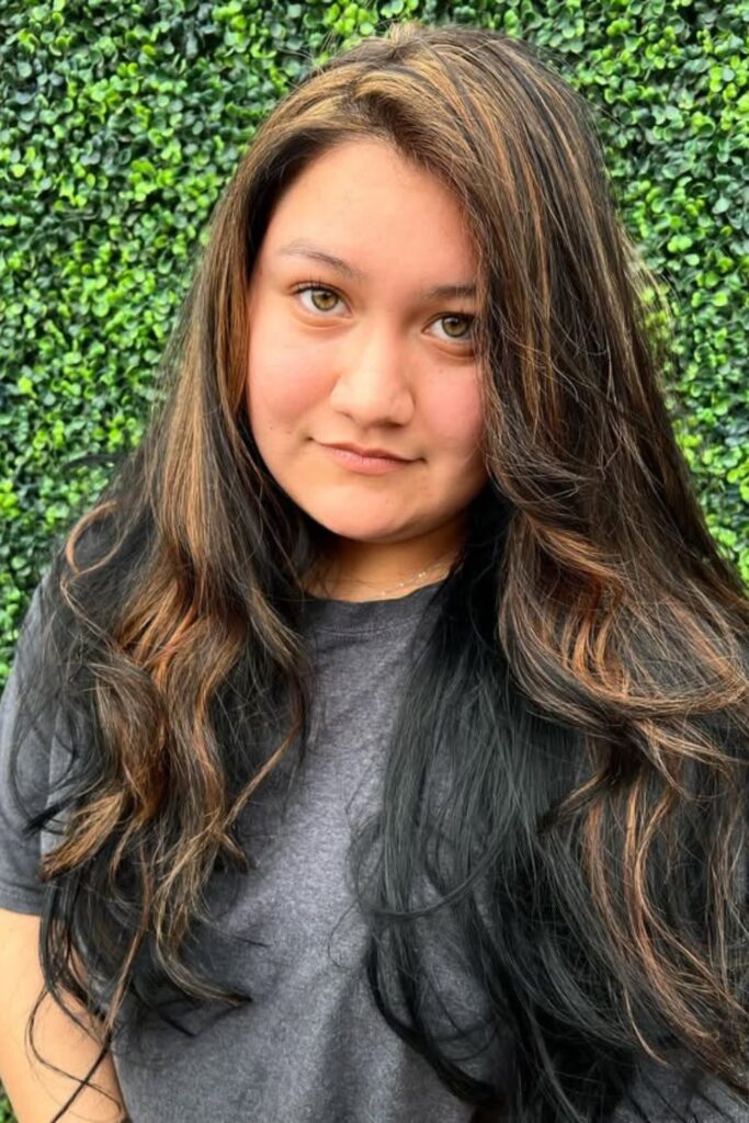 Add depth and brightness with delicately placed caramel highlights in your black hair.