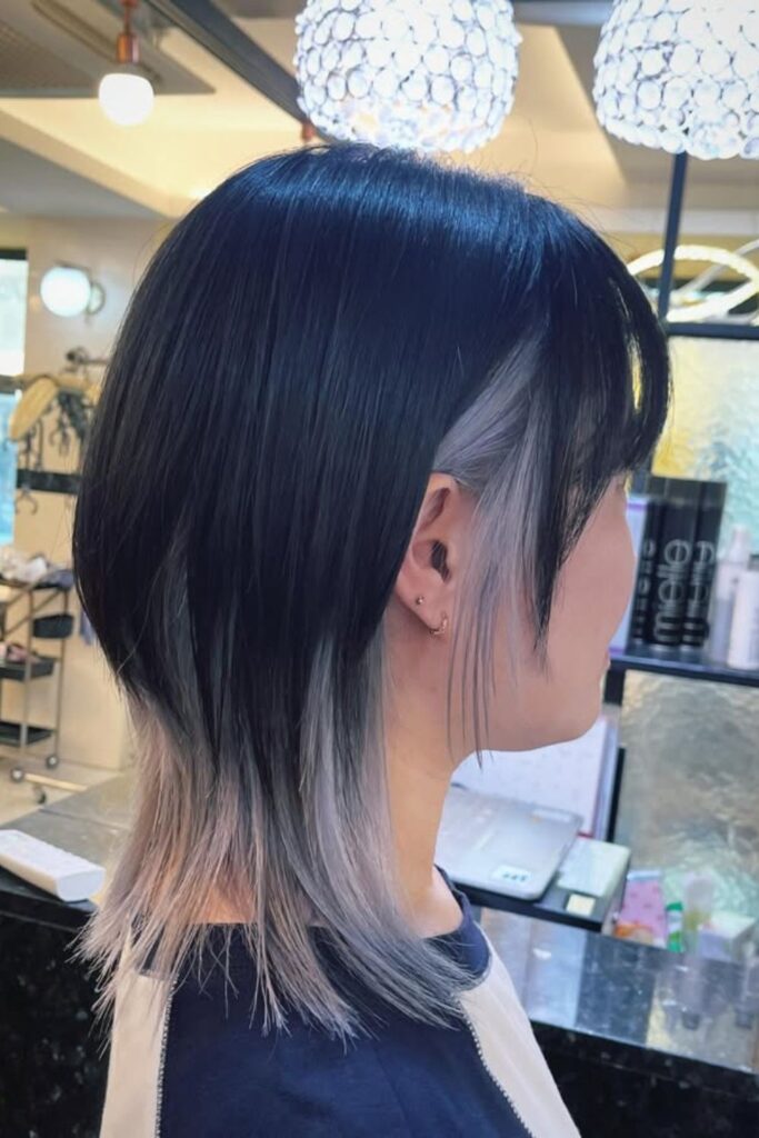 Adding a touch of highlighter yellow to the bangs amplifies the intensity, giving this punk-inspired style an edgy flair.