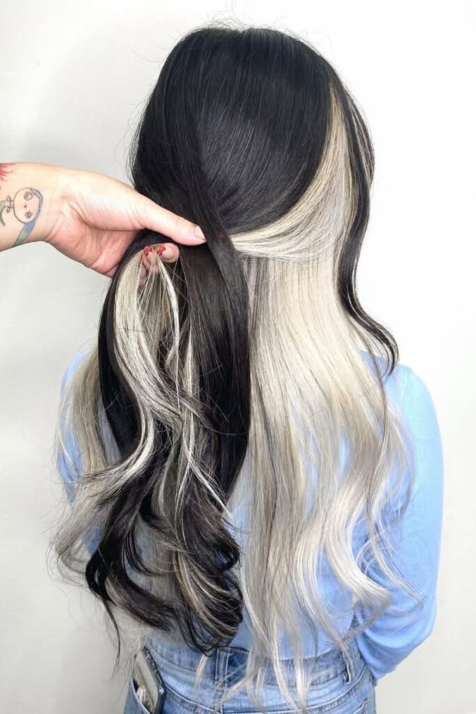 This graphic, two-tone look oozes individuality and looks especially eye-catching on long hair for maximum flow.