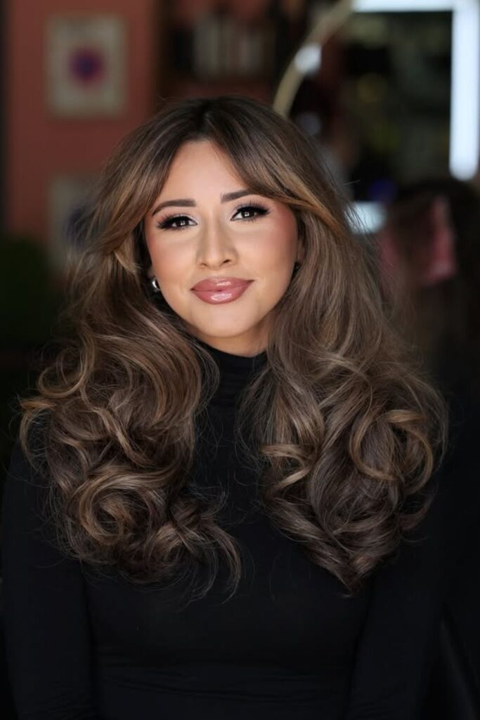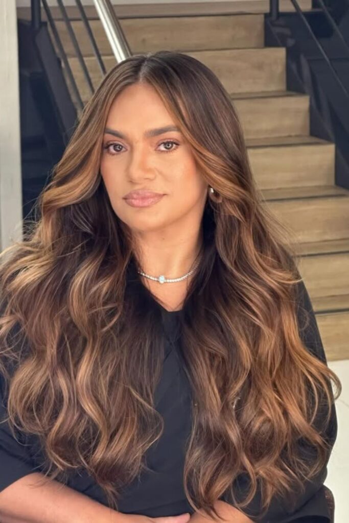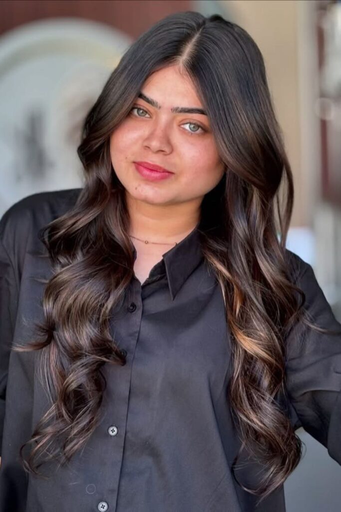 Soft, lighter streaks woven through the waves add a natural, radiant glow that flatters brown skin beautifully.