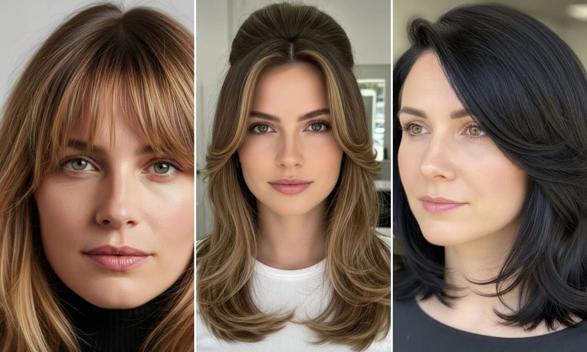 Soft bangs can visibly narrow the face without a blunt cut. The key is in the shape, not added volume on the sides.