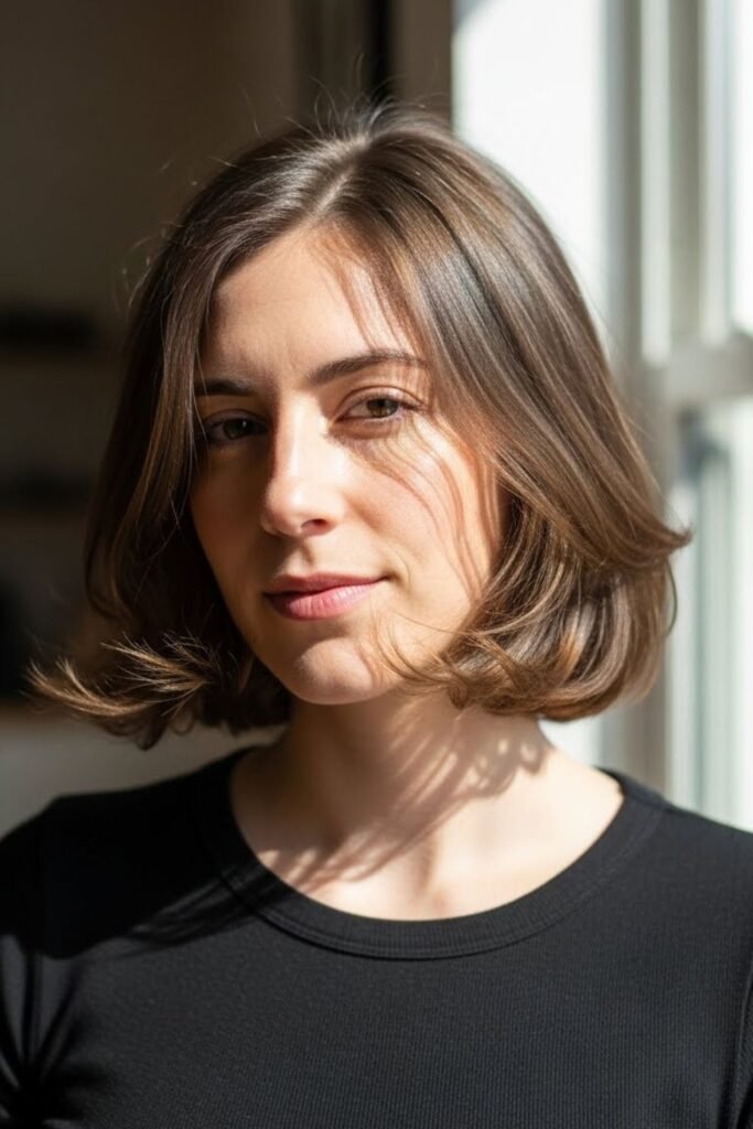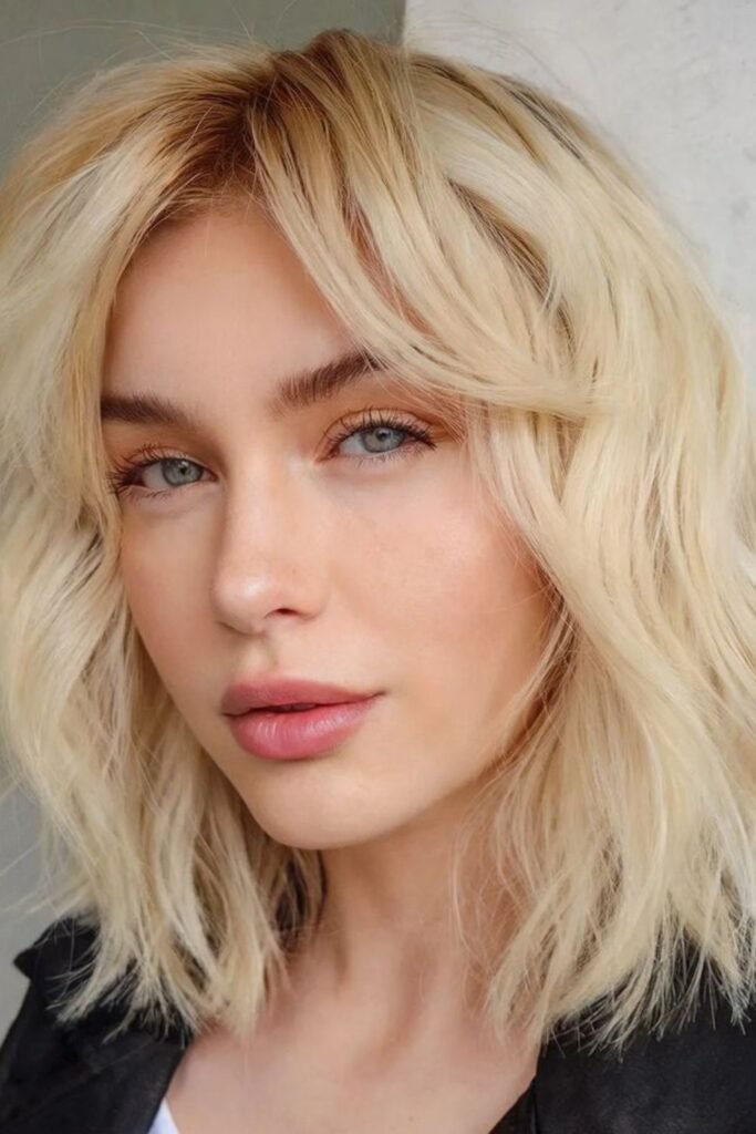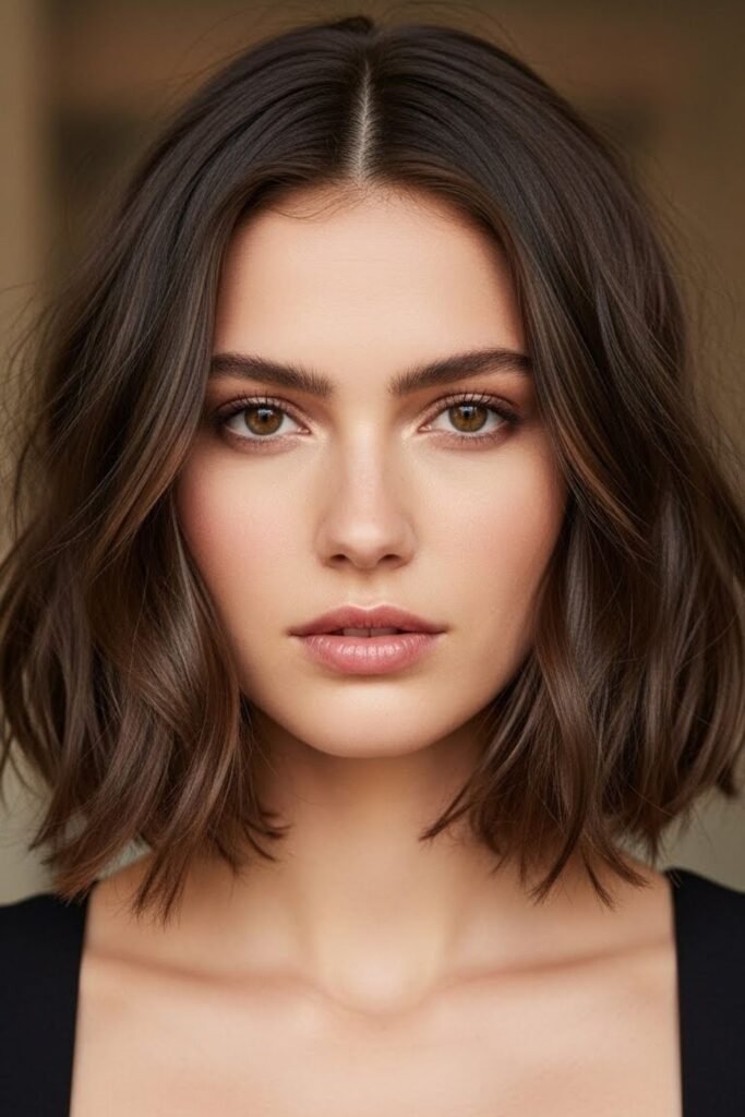 Chin-length cuts usually scare people with square faces, but texture changes everything. Soft waves and uneven ends stop the jaw from looking boxed.