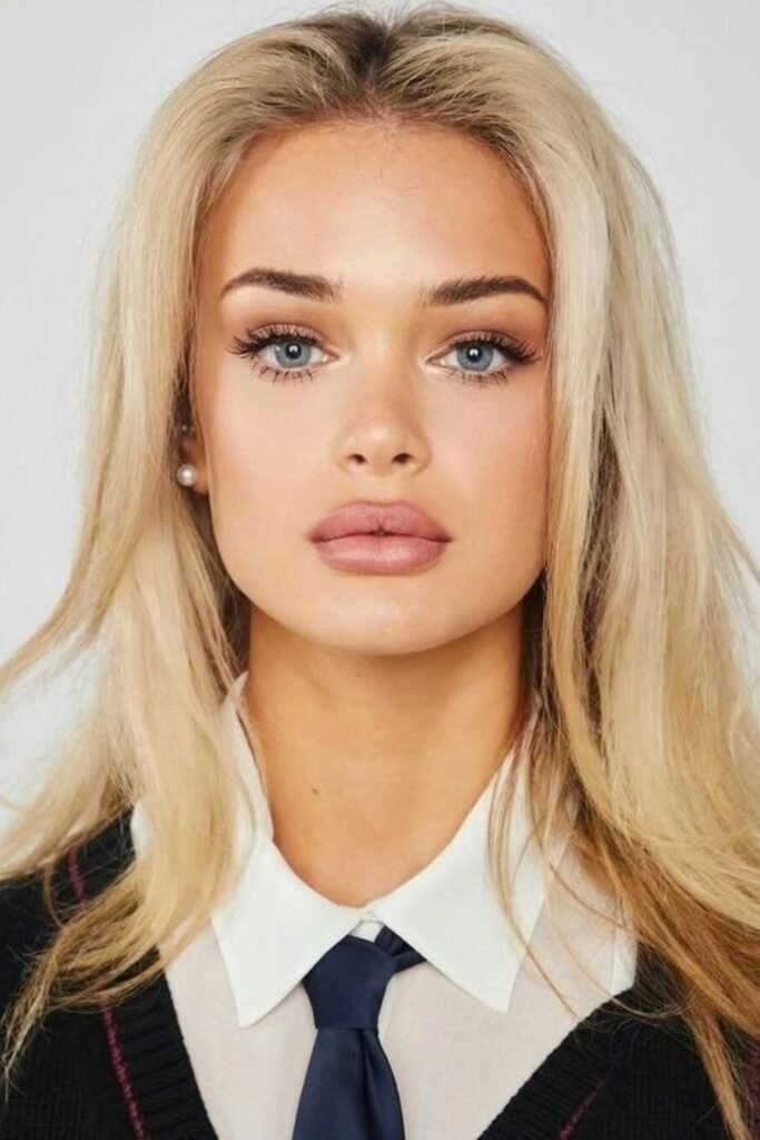 Attention shifts instantly when hair moves across the face instead of sitting flat on both sides.