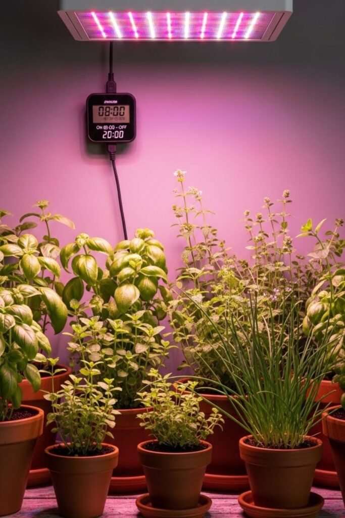 A simple grow light fixes that problem fast. When herbs get enough light, everything else becomes easier watering, growth, and even flavor.
