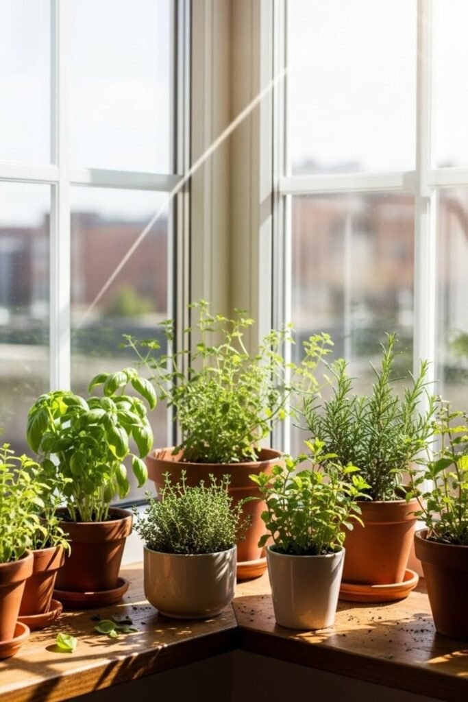 I stopped wasting corners once I realized herbs love overlooked spaces. A bright window corner gives light from two angles, which keeps growth even.