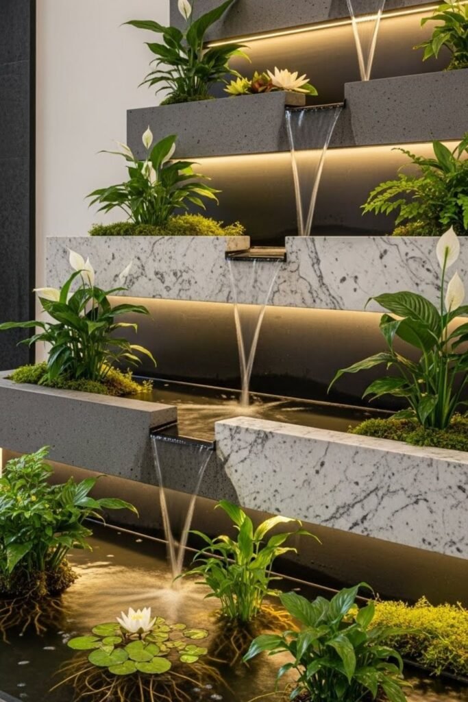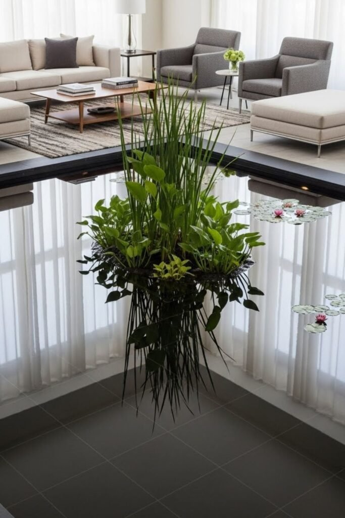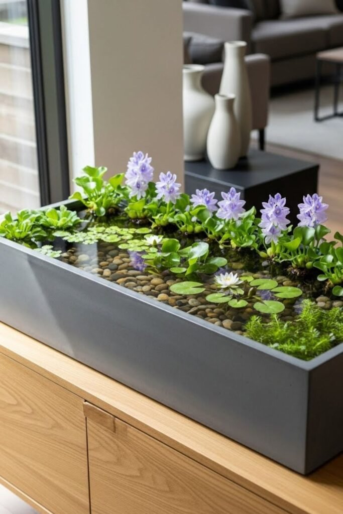Mounting a water garden on the wall changes how the whole room feels, and I’ve seen it surprise people the most. I like this idea for small homes where floor space already feels tight.