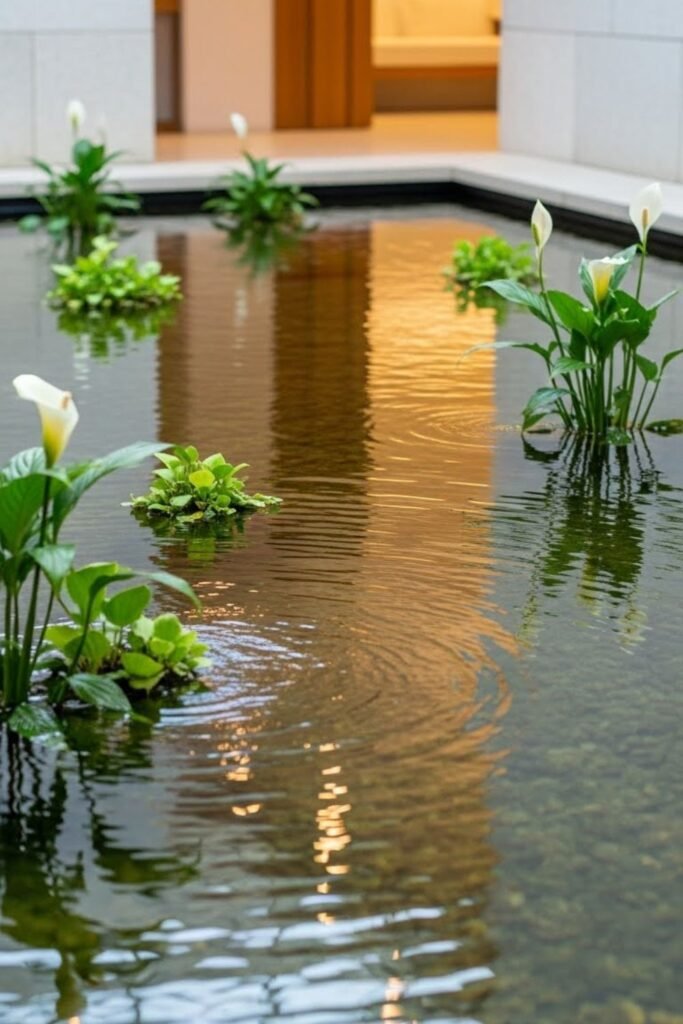 If you choose one strong element, clutter disappears. I keep plants minimal so water remains the star. Placement matters more than decoration here.