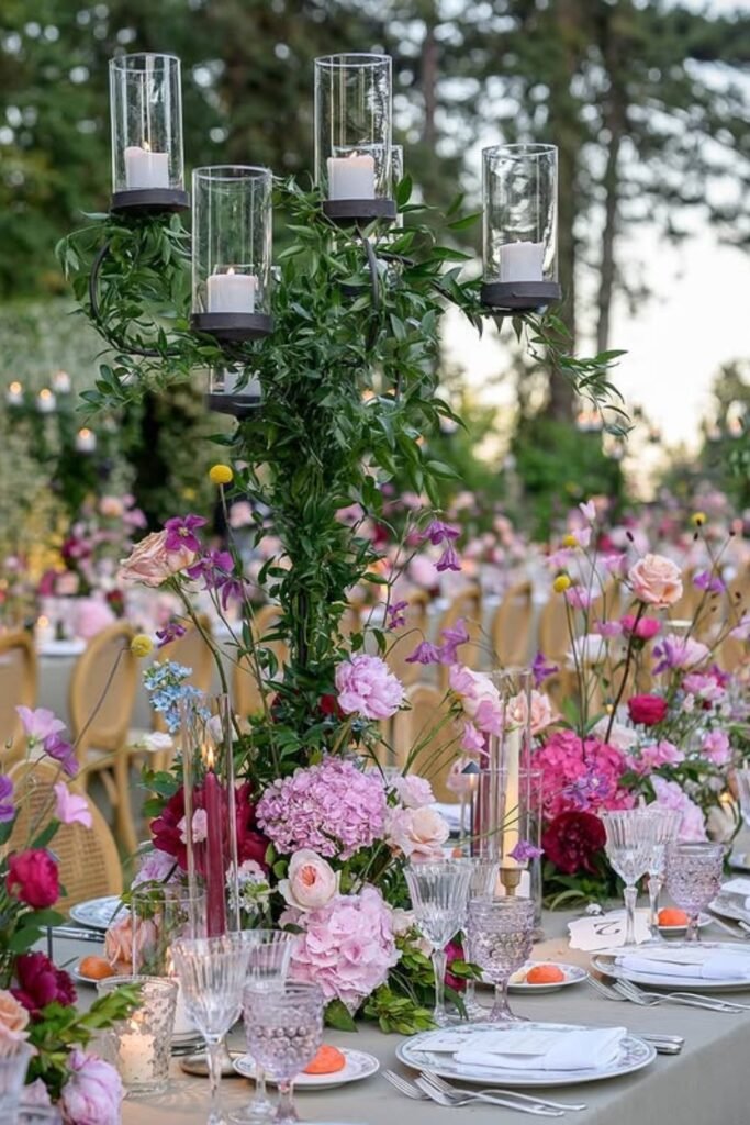 This Italian villa wedding style feels intimate yet expansive, especially when candles repeat rhythmically and greenery replaces heavy floral arrangements.