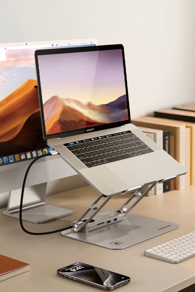 Sharp angles mean serious support. Z-shaped adjustable laptop stand like this lets you control both height and tilt, which makes a big difference if standard stands never feel “quite right.”