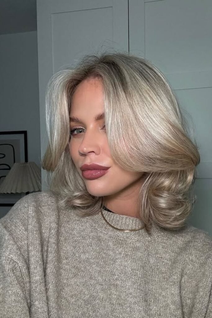 To achieve the look, use a flat iron or a round brush to gently turn the ends out. This technique allows for the movement without compromising overall fullness of the hair.