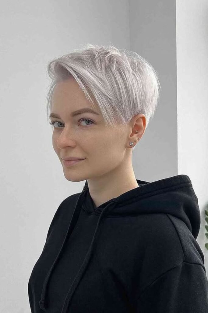 While the overall length keeps the pixie approachable. This option fits well when you want a youthful feel without going dramatic.