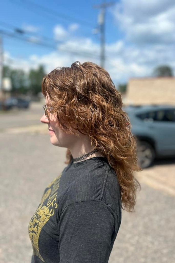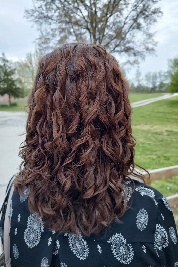 These loose, defined curls bring out the rich tones of copper and honey in your hair, giving it depth and dimension.