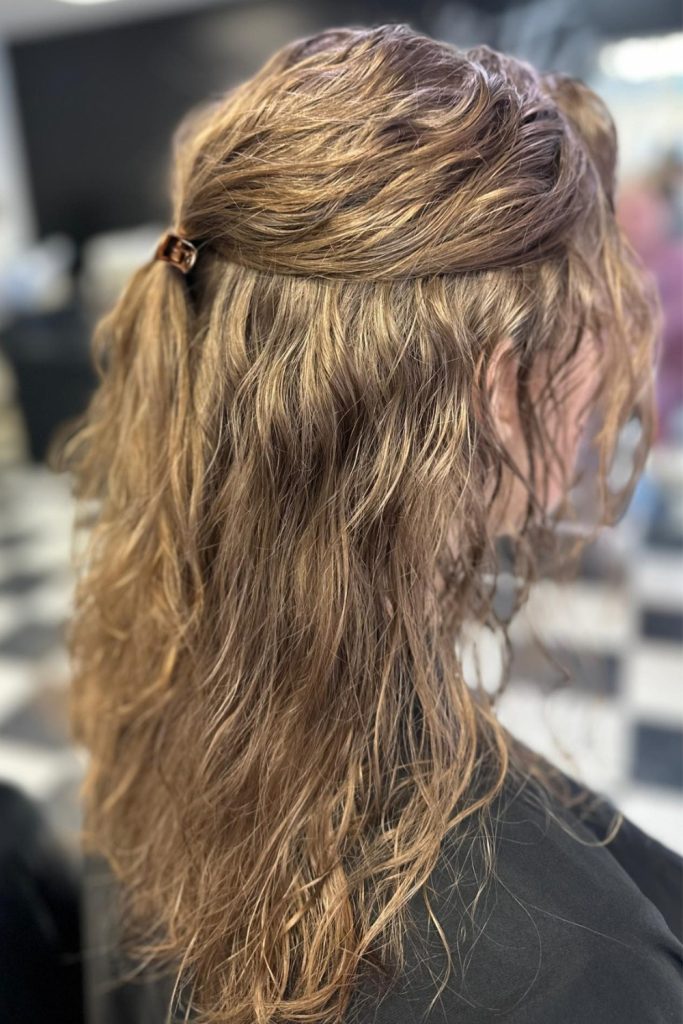 The curls start around the middle of your hair, with the top part gently pinned back so your waves can flow freely.
