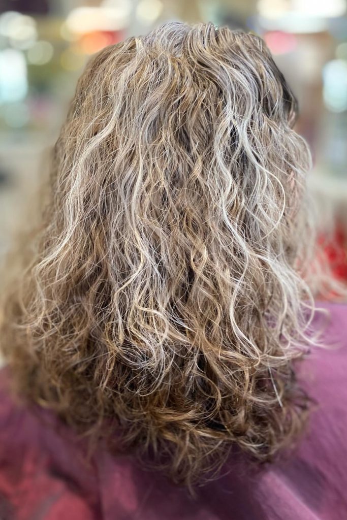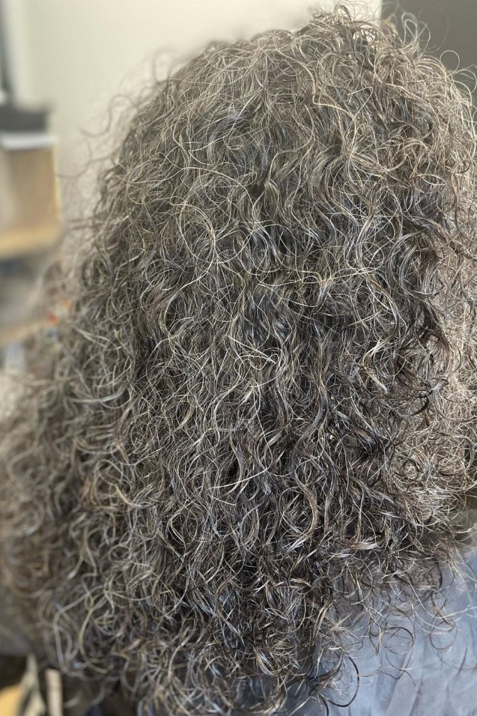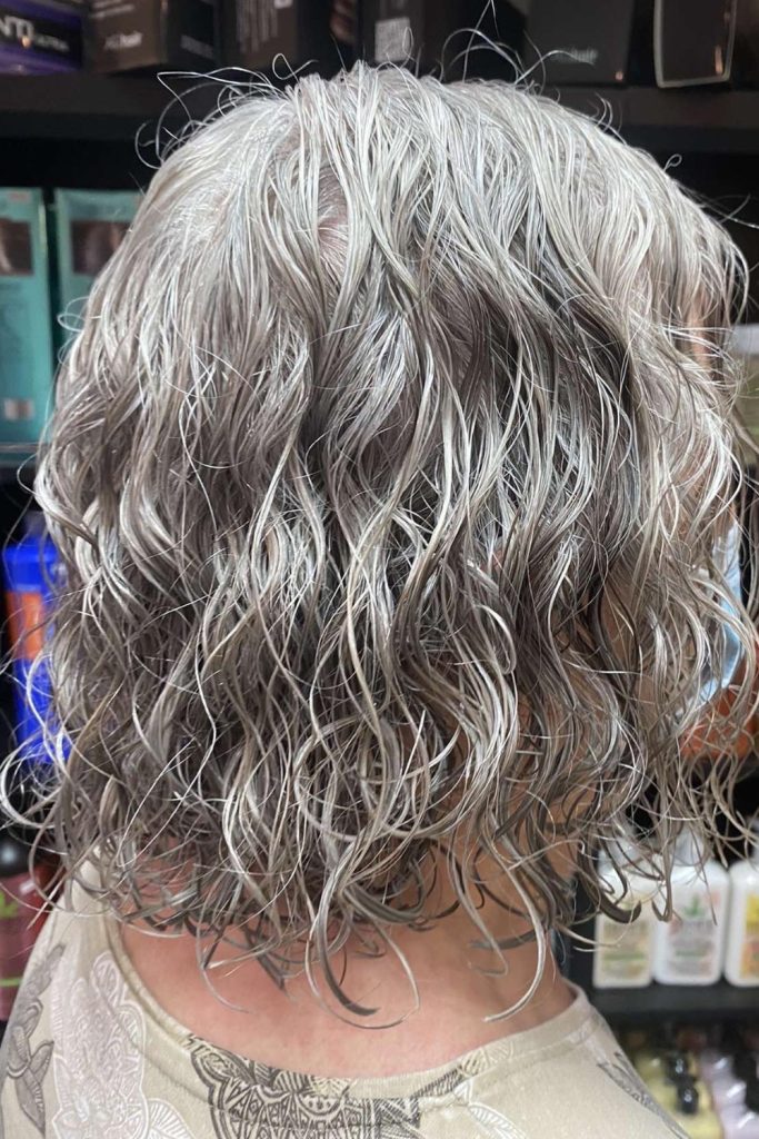This loose spiral perm highlights the beauty of your naturally graying hair, adding texture with soft, defined curls.