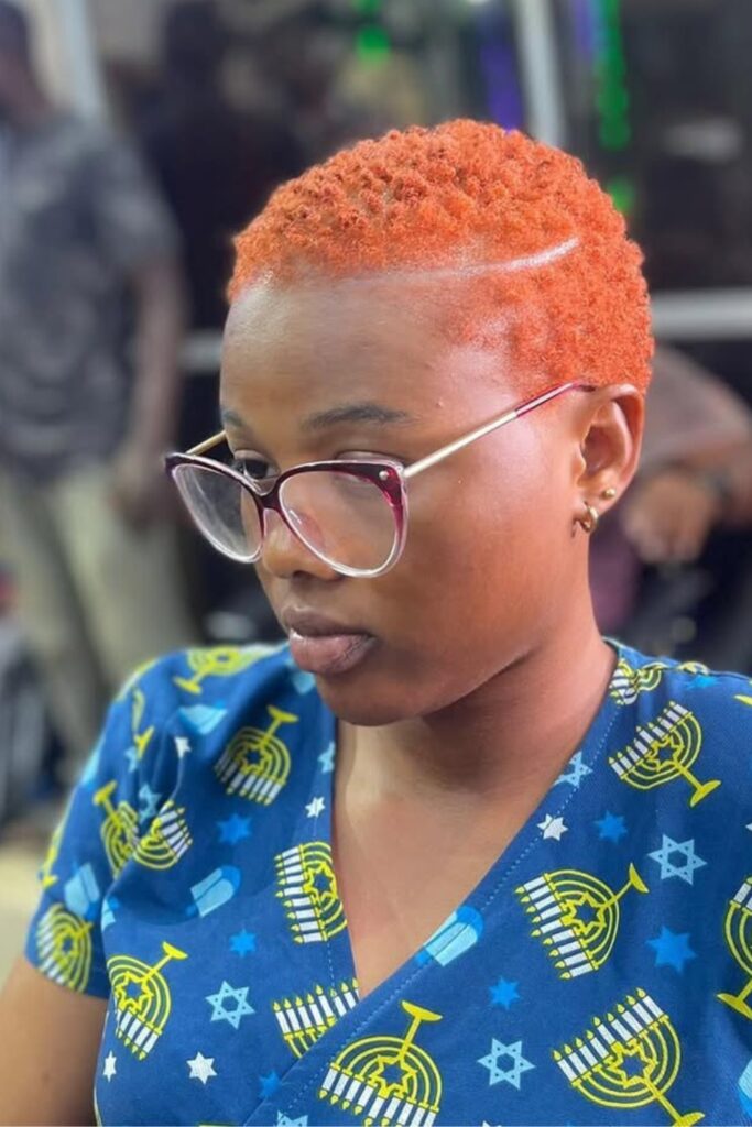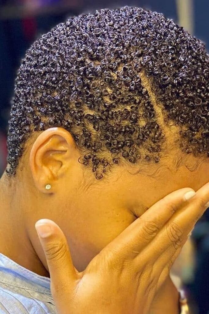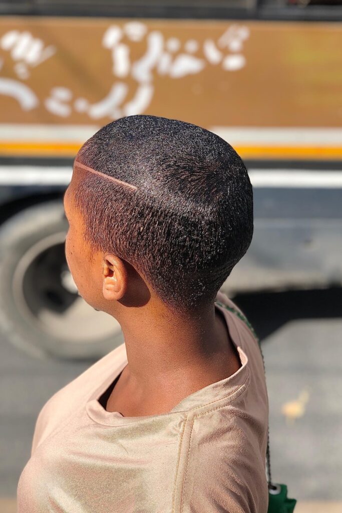 The Natural Tapered Cut embraces the beauty of natural hair, styled in a short, tapered look that enhances the hair’s natural texture.