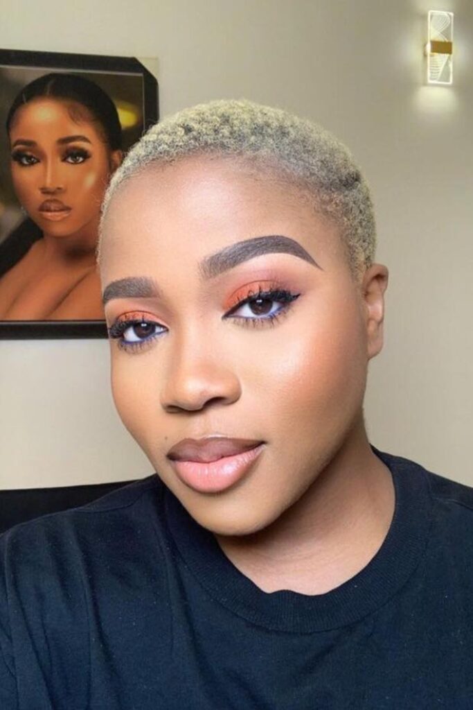 With extremely short hair, this look is as low-maintenance as it gets, while still maintaining a sleek and stylish edge.