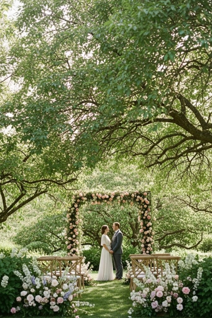 Flowers, greenery, and fresh air do most of the work, helping the ceremony feel effortless and naturally beautiful for you both.