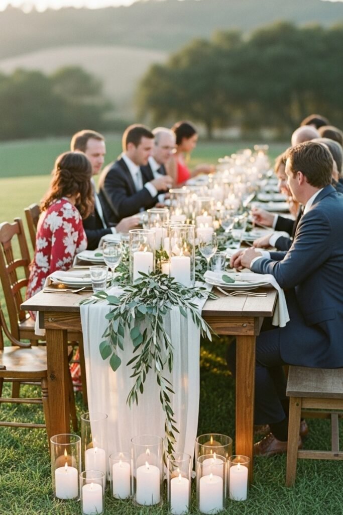 Long tables encourage intimacy, eliminate awkward seating plans, and make your celebration feel like a beautiful dinner rather than an event.