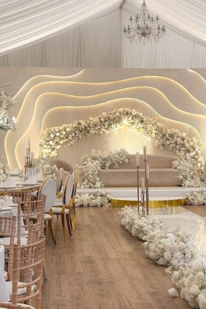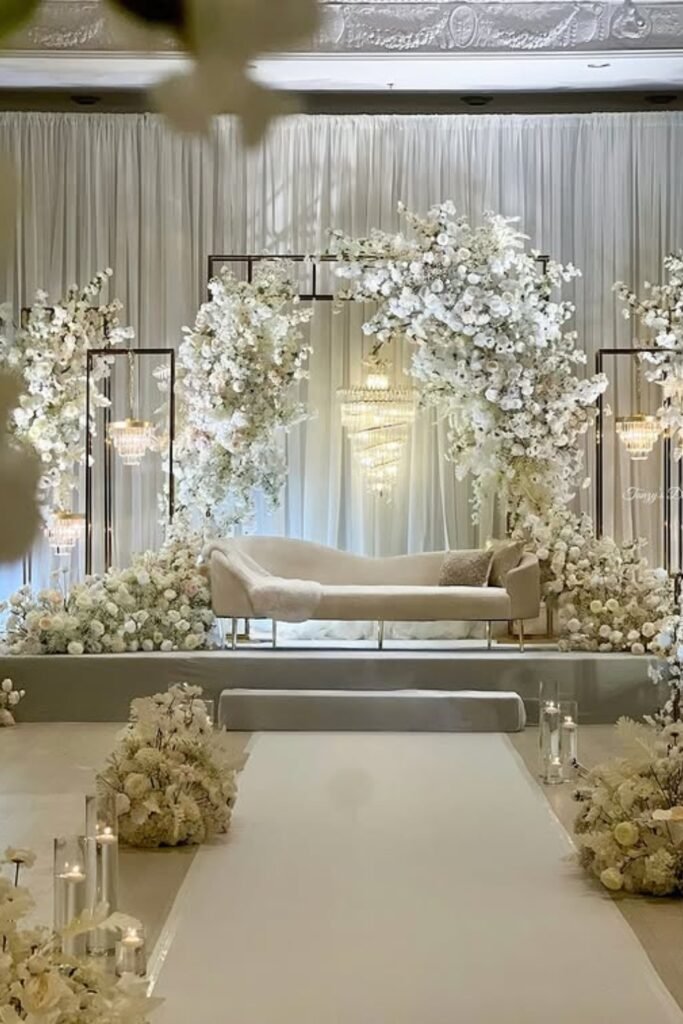 This setup suits couples who love understated luxury and want guests to feel relaxed, not visually overstimulated, throughout the reception.