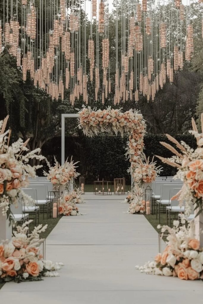 Suspended elements soften the space and guide emotion forward, which helps modern ceremonies feel immersive.